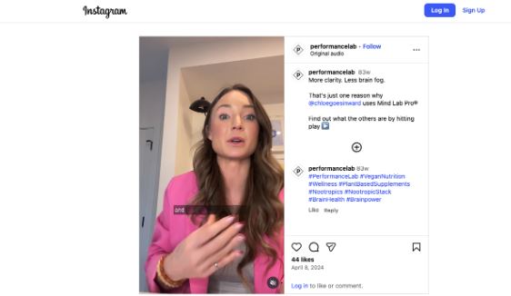 For instance, Performance Lab implements this approach on its Instagram profile, where each video includes captions. It makes content consumption super easy for its audience, which is particularly important, seeing that this brand prioritizes educational and influencer video content on its social profiles.